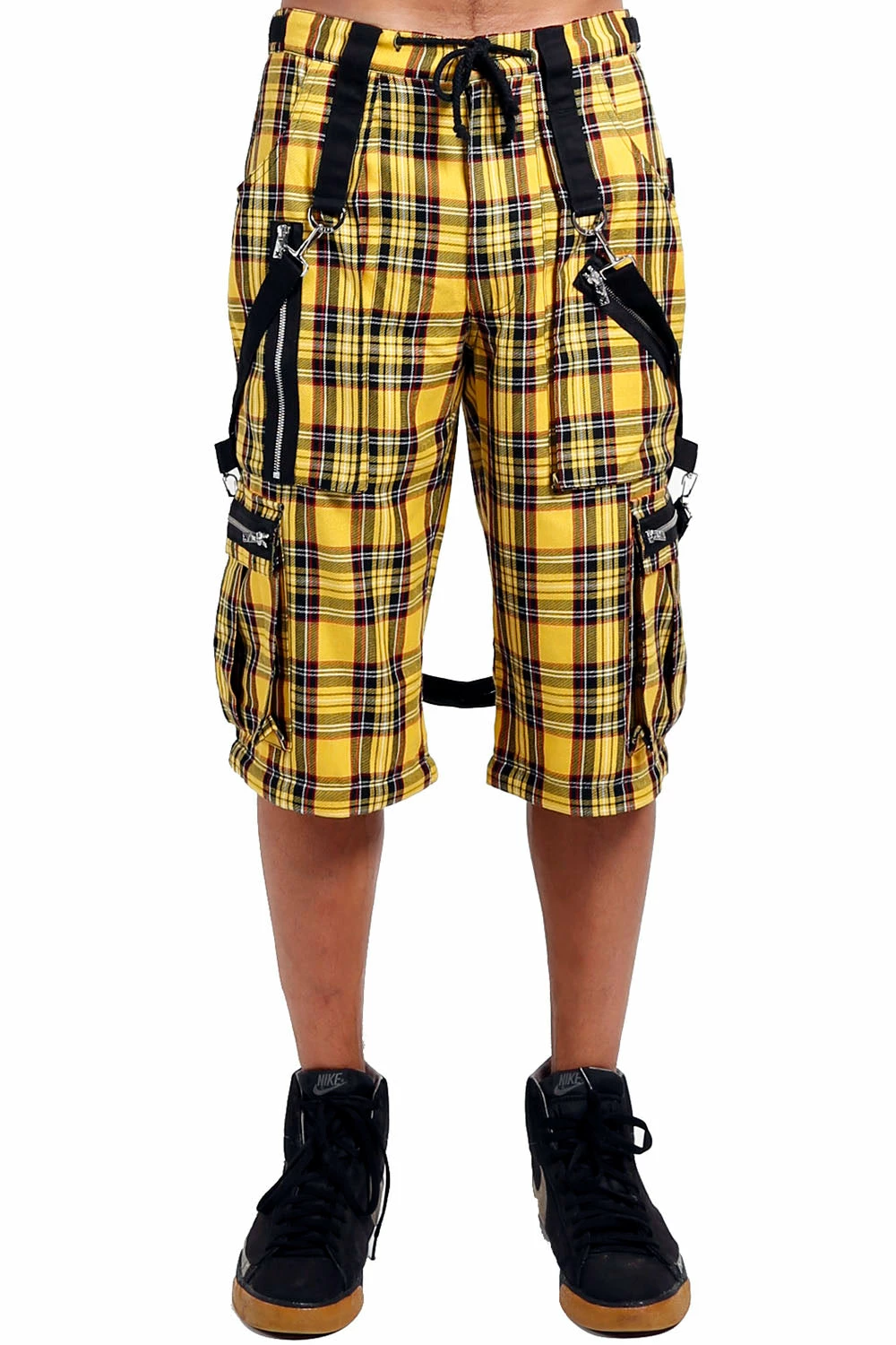 Fight the power in Tripp’s Clash Pants! Plaid-on-plaid, these bondage pants keep you looking hella cool while you blow minds and break hearts. Reject the mainstream with loud yellow print, silver zipper accents, baggy cut for comfort, and removable statement straps. From pants to shorts, you have the power! Zip off the bottoms to transform these Tripp pants into Tripp shorts!