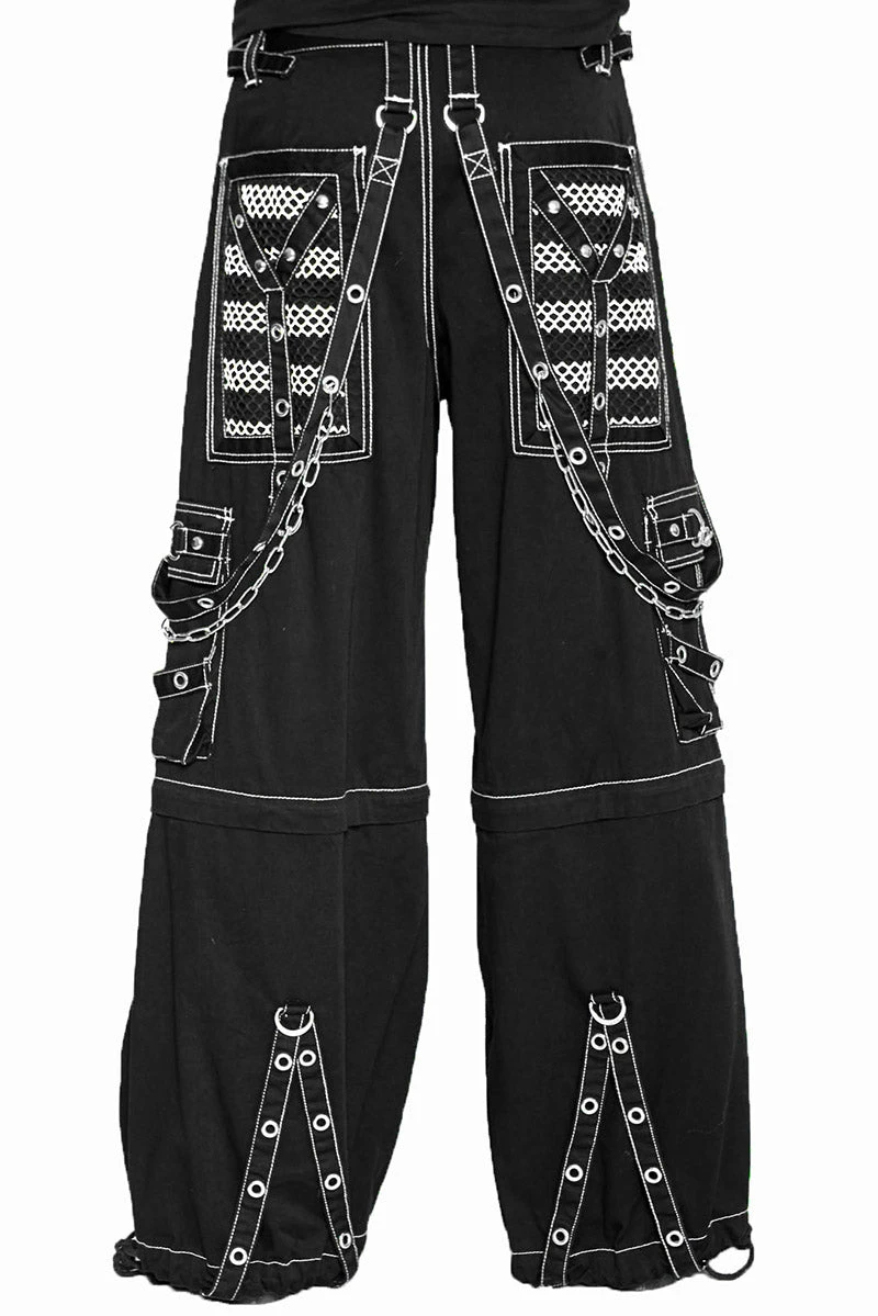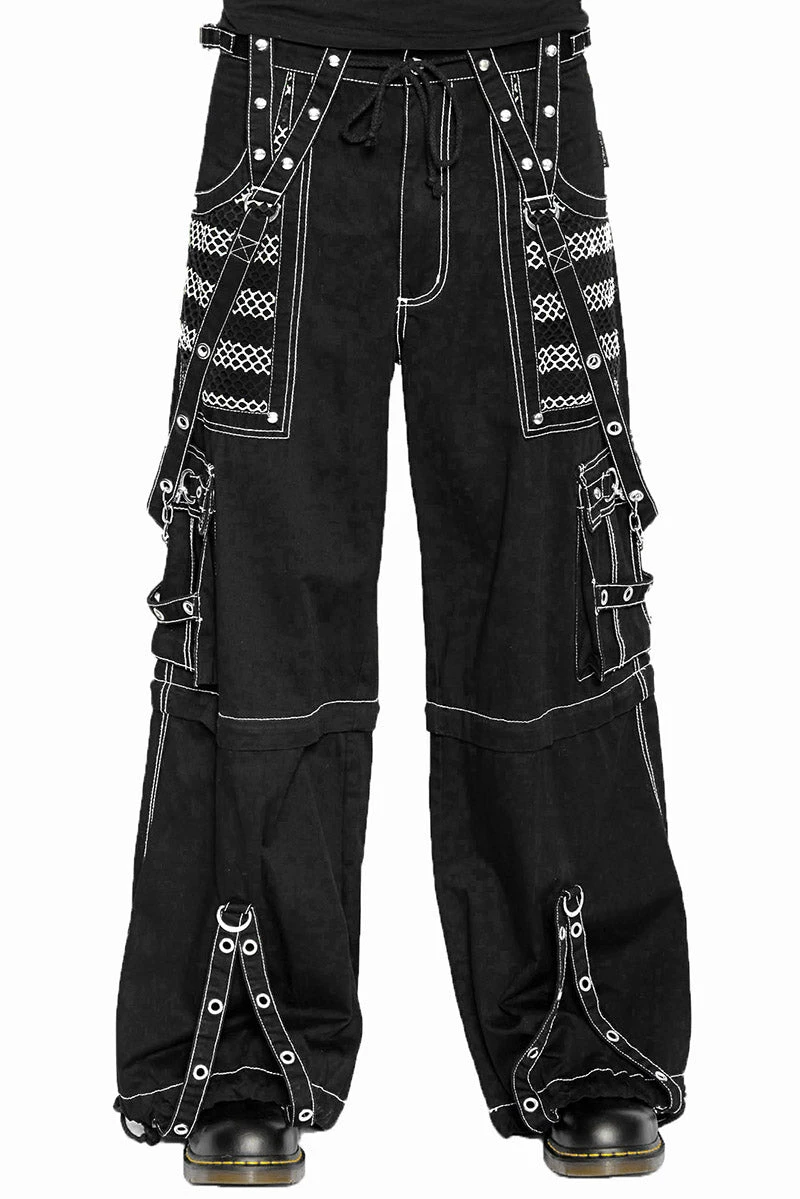 Haunt their nightmares in these baggy black Tripp pants, possessed with ghostly-white details. Embrace your inner darkness in the metal hardware, removable chains, and deep netted pockets. Features adjustable ankles and a drawstring waist for the perfect fit. Zip off the pants legs to transform these Tripp pants into shorts!Â