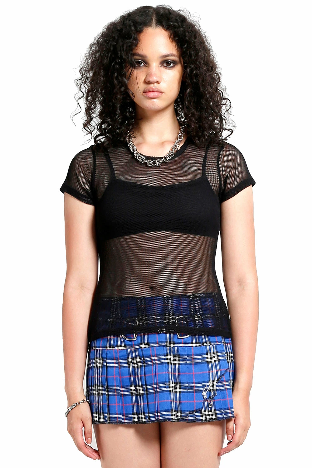 In shadows you dwell. You’re a mystery many would like to solve, but few ever will. Constructed of high-quality fishnet fabric, this short sleeve t-shirt shows some skin to intrigue and leave ’em wanting more! You’re a dark dream in this gothic baby tee, complete with a romantic round neck, flattering fit, and fishnet fabric.Â