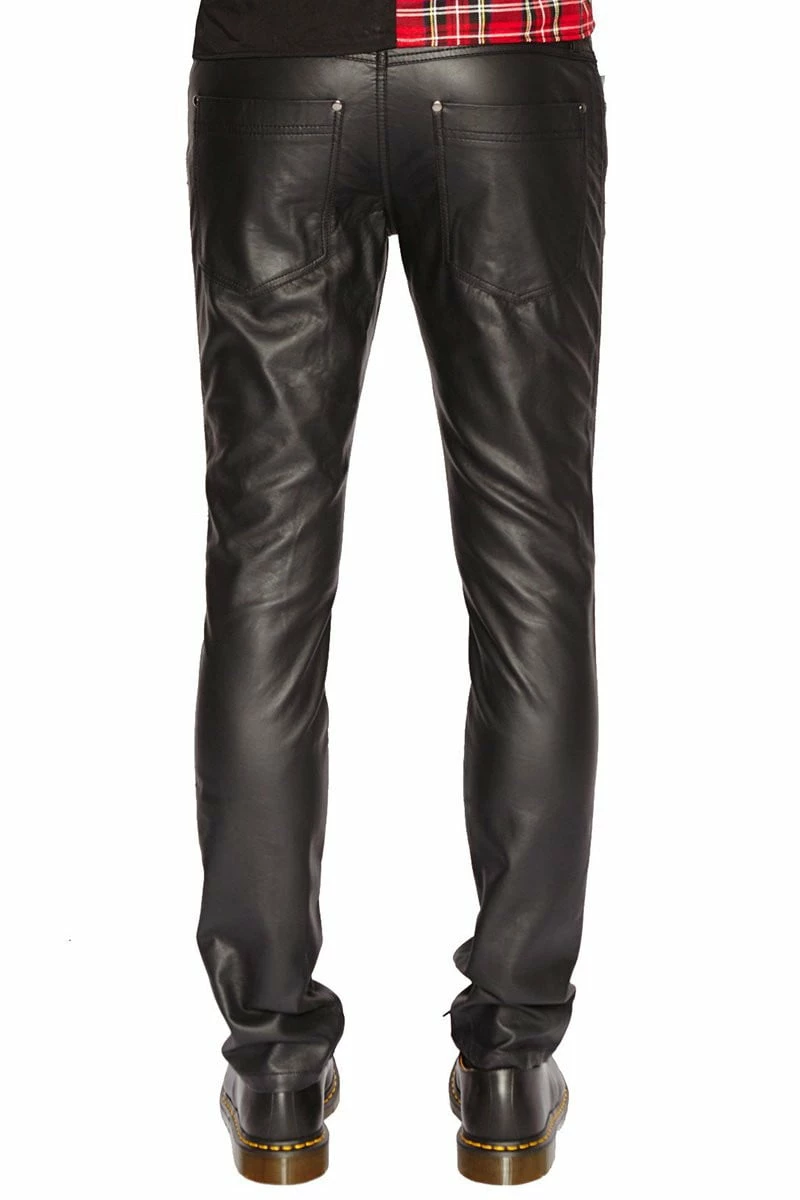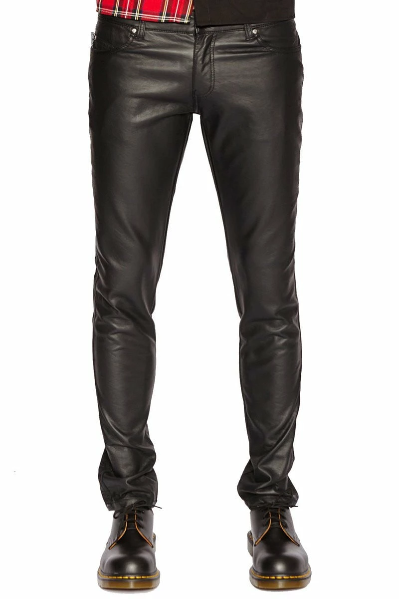 You’re too legit to quit in these slim leg pants, complete with metal skull rivets. You’re stage-ready in the black-on-black thread details, 5 pockets, and premium pleather. Rock on.Â