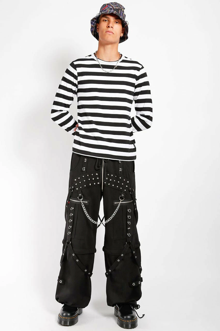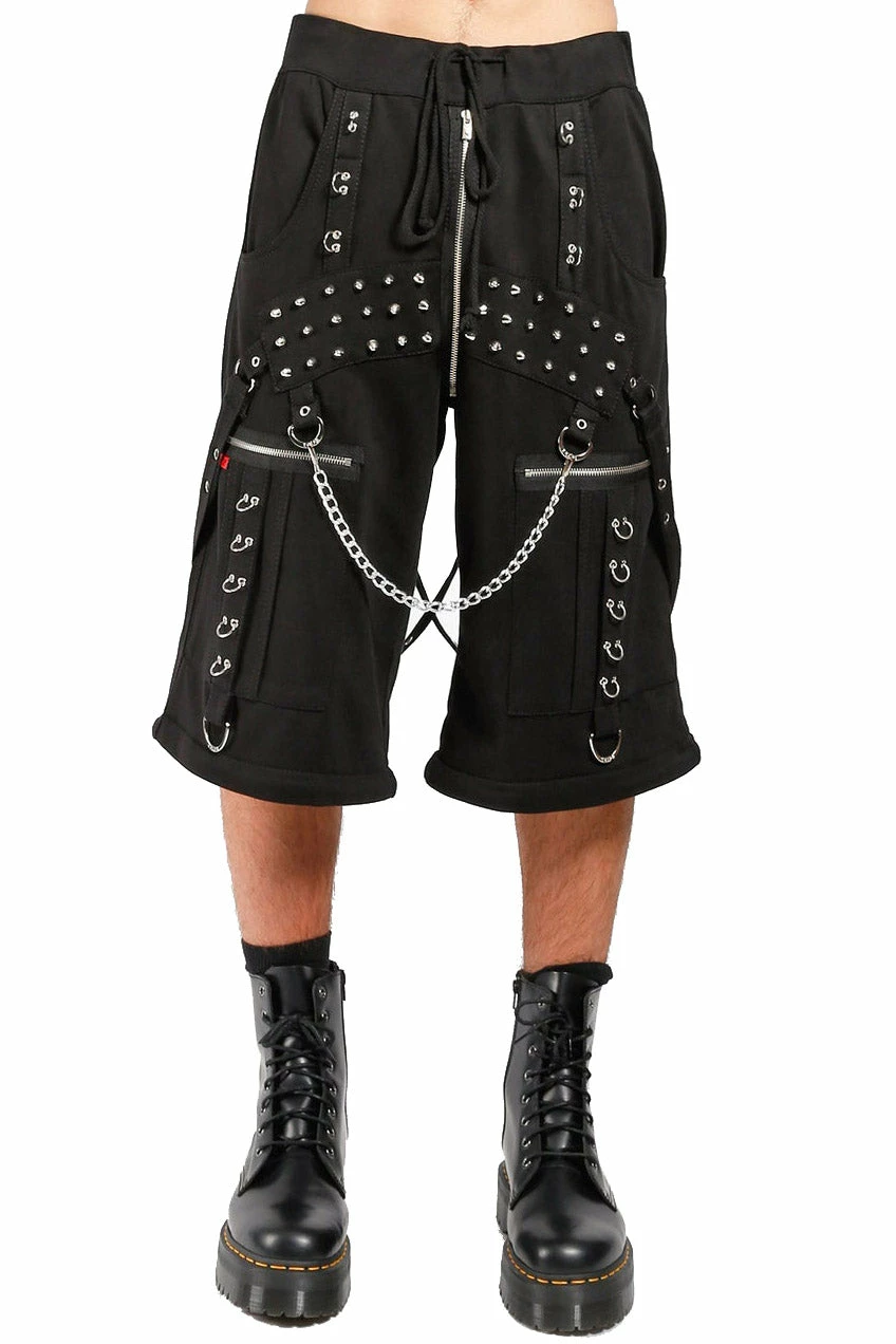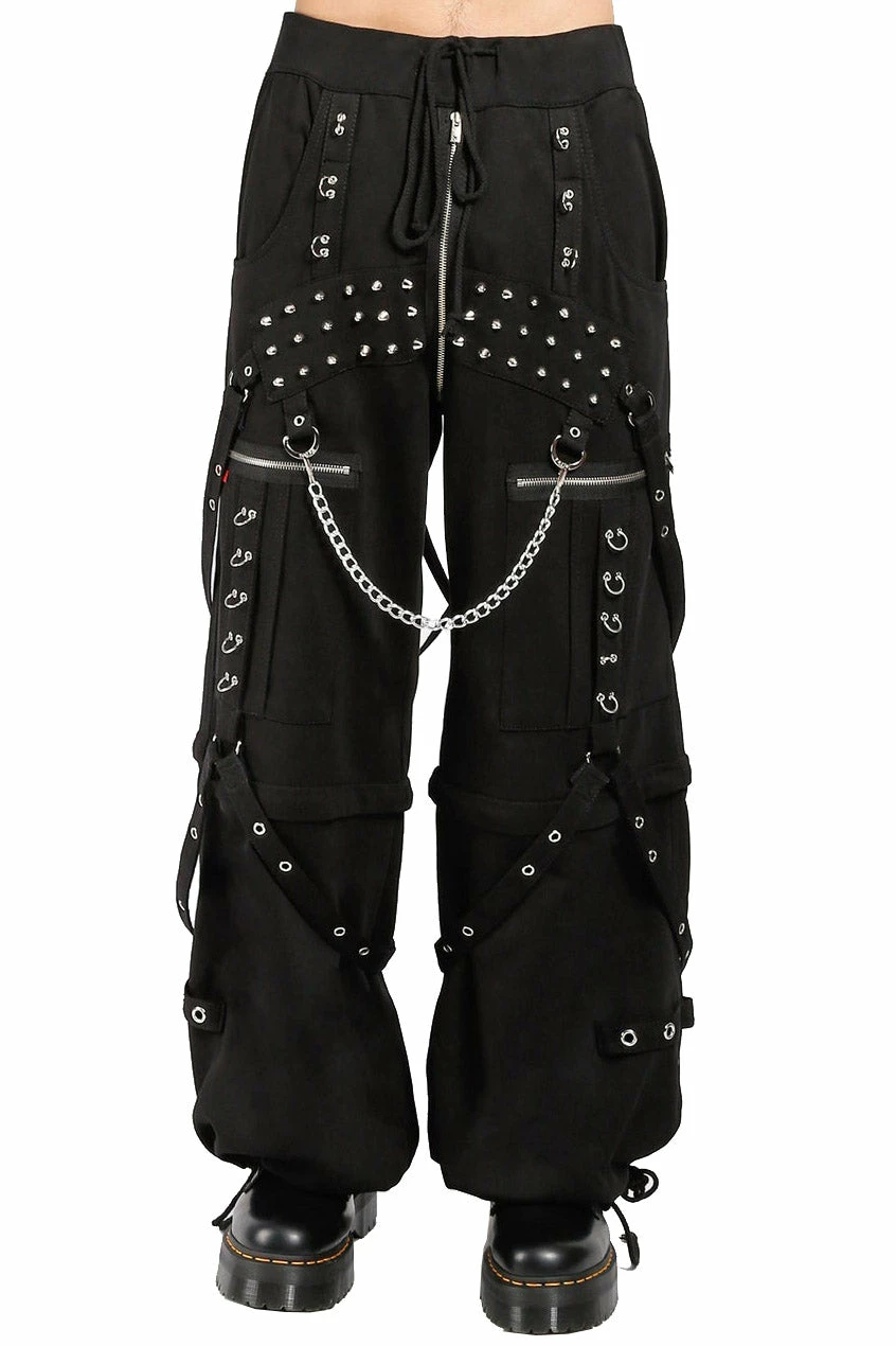 They’ve got a monster crush on you in these dark n’ deadly Tripp pants! Made of black jersey, these gravely goth pants are hella heavy metal… hexed all over with silver hardware. Customize your afterlife in the adjustable ankles and drawstring waist. Remove or rock the detachable chains—zip off the pant legs to transform these Tripp pants into shorts!Â