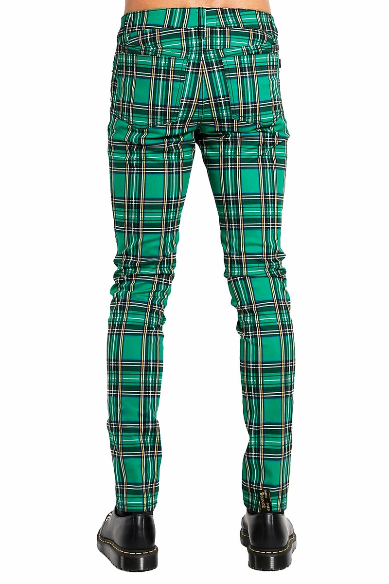 Punk-up your afterlife in these plaid green pants! Conjure chaos in the silver rivets, slimming skinny fit, and stretch cotton construct. Complete with pockets for carrying your smokes, lighter, and tears of your enemies.Â