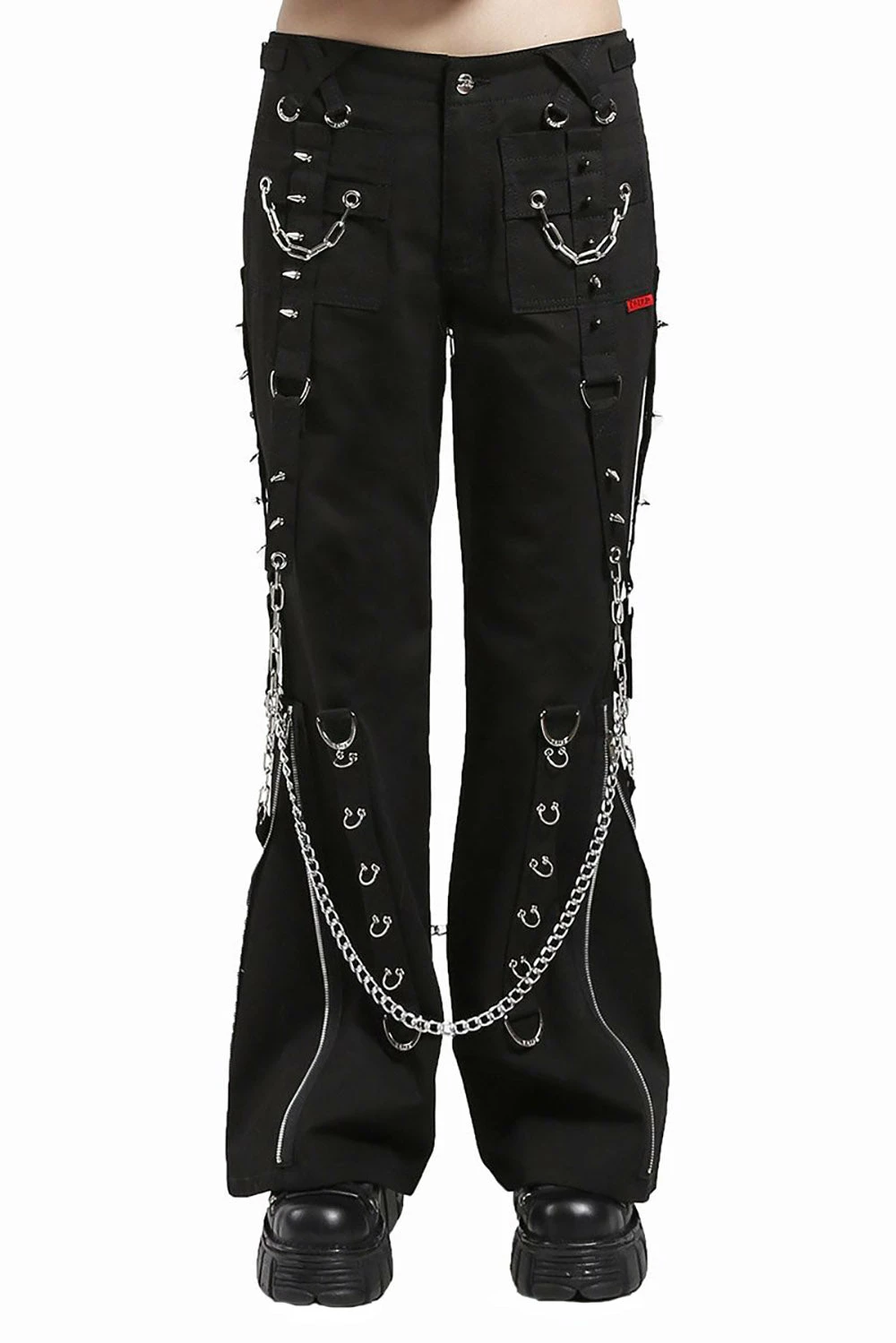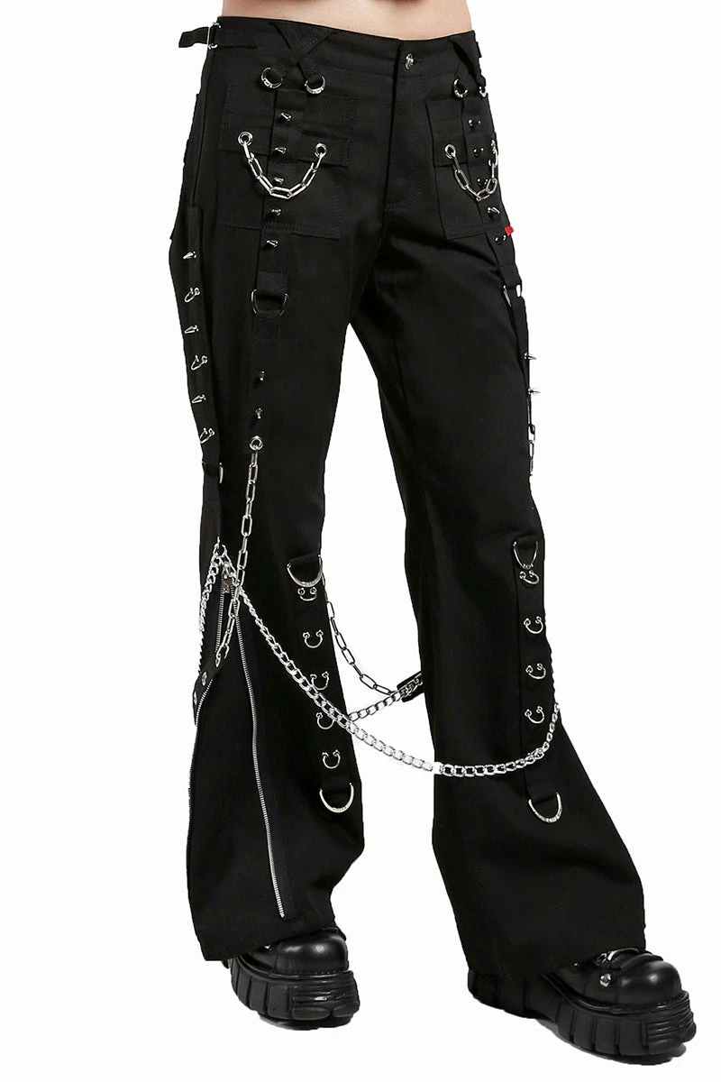 Get chained up these baggy bondage pants, loaded with an arsenal of metal hardware! Zip up the pant legs for a change in style—carry your evil essentials in the pockets. Unleash in the metal rivet spikes, accent straps, and D-ring details. Finished with a baggy fit, pierced with metal to match your black metal heart.Â
