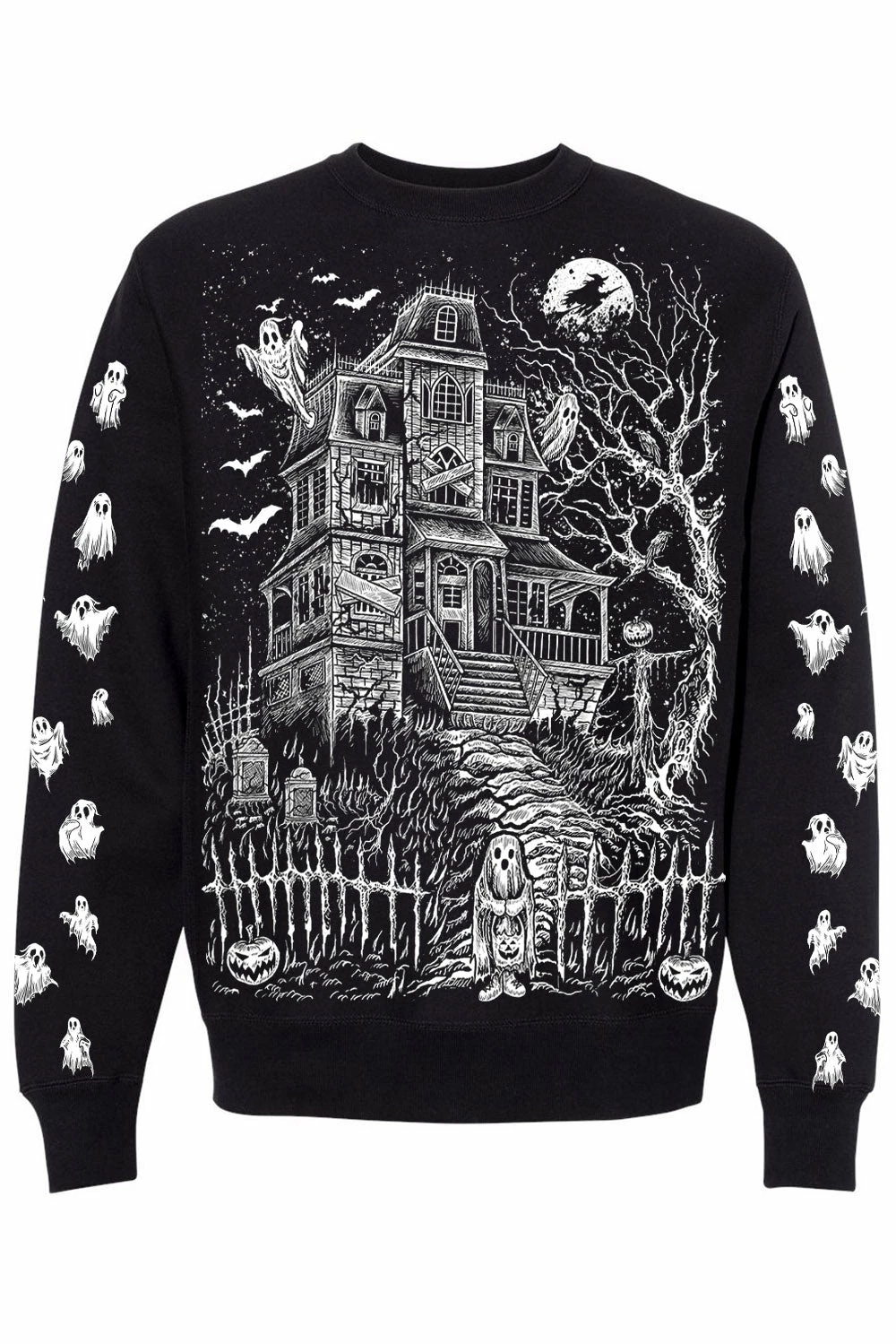When witches go riding, and wood creaks undaunted, ghosts chant in whisper, “This house is haunted.”