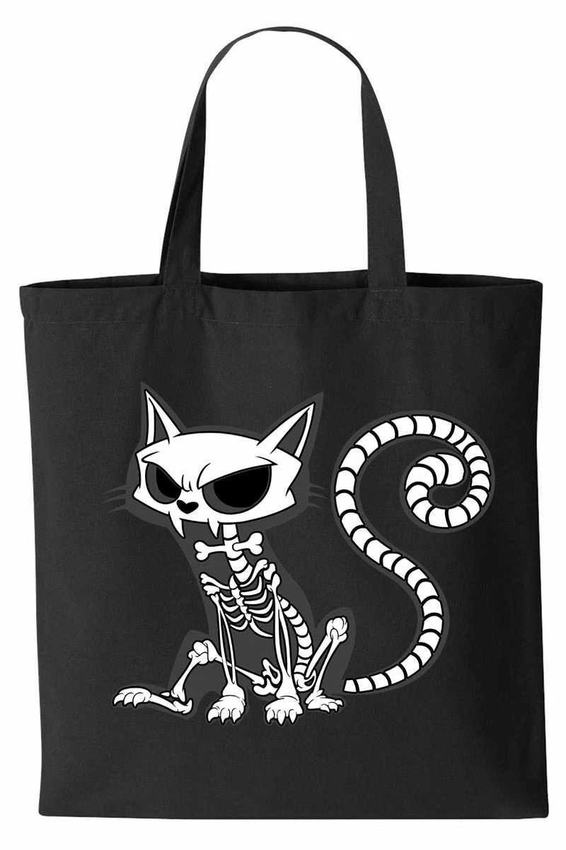 Tote your evil essentials in this spooky bag! Conjure creeps with the skeletal design, featuring a dearly departed pussycat dressed in his best bone bowtie. Perfect for toting your wallet, phone, cat food, and tears of your enemies.