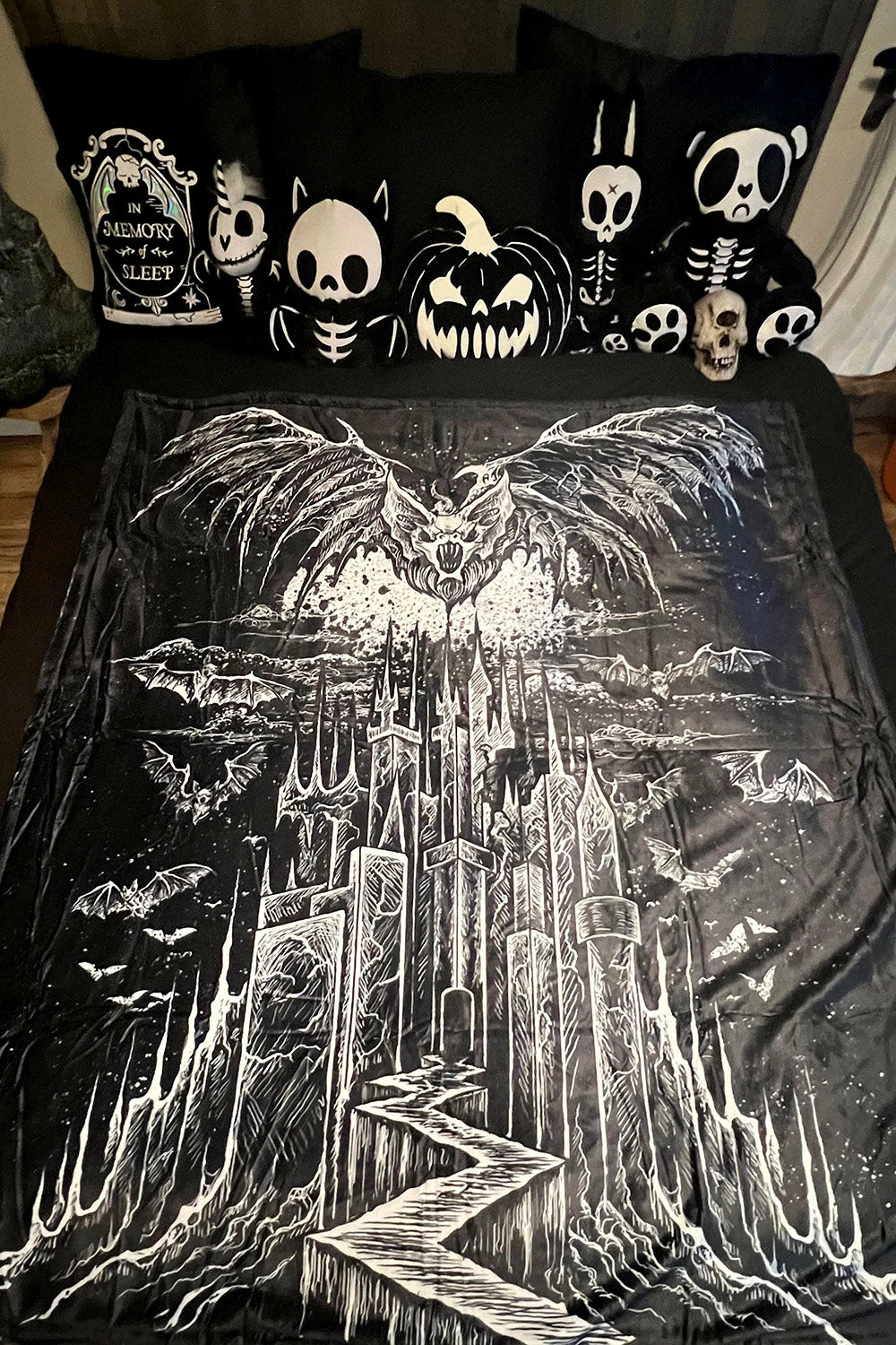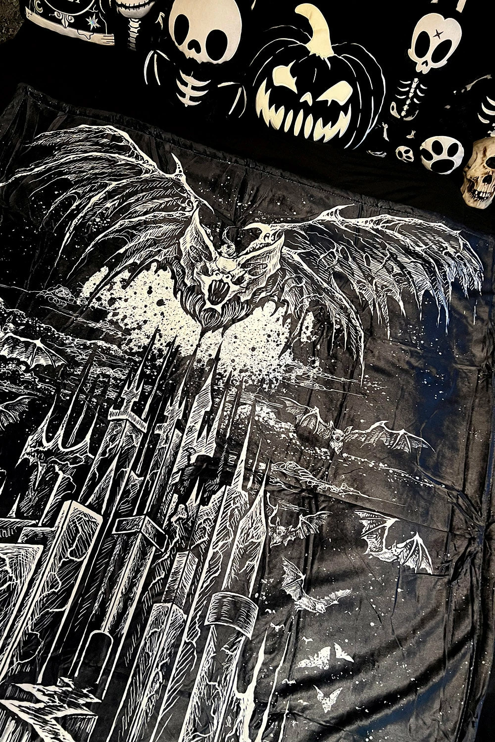 A legion of ghostly white bats burst forth from the castle walls… the feeding had begun.Â